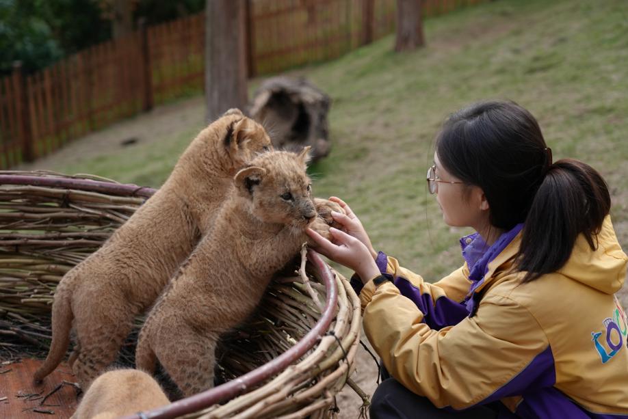 On Wednesday, a rare sunny winter day in Chongqing, five African lion cubs made their debut at Locajoy Theme Park in the city's Yongchuan district under the watchful eyes of their dedicated caretakers. [Photo by Wang Chengjie/For chinadaily.com.cn]
