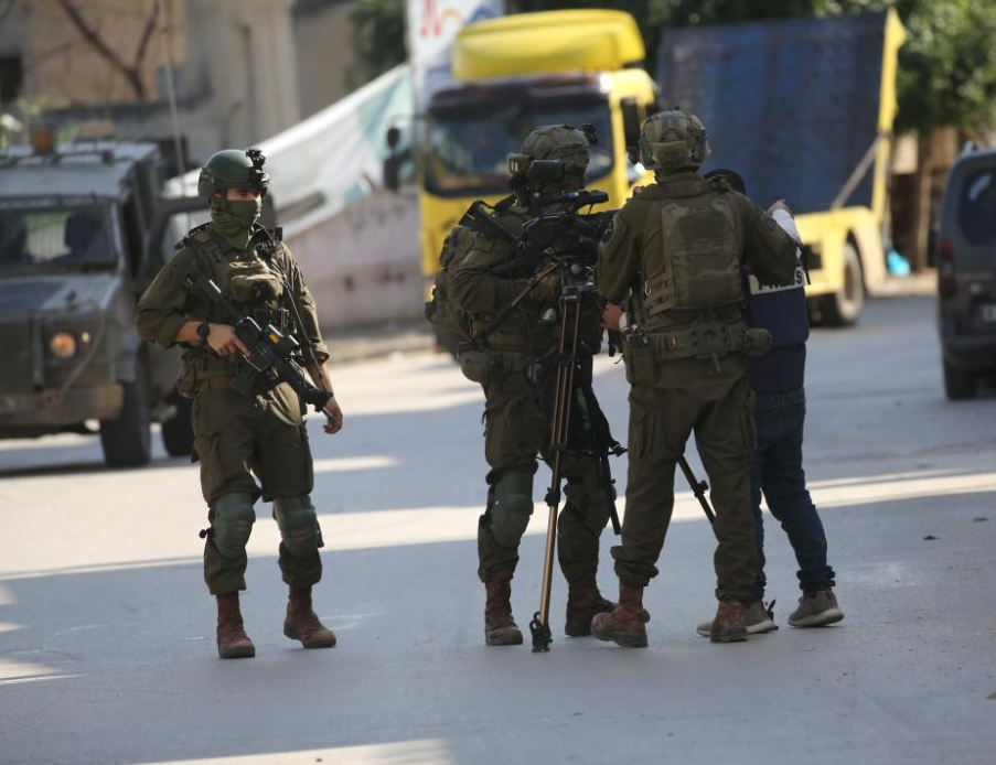 Israeli soldiers prevent Palestinian journalists from reporting during an Israeli military operation in the West Bank city of Tubas, on Nov 27, 2025. [Photo/Xinhua]