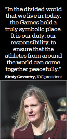 "In the divided world that we live in today, the Games hold a truly symbolic place. It is our duty, our responsibility, to ensure that the athletes from around the world can come together peacefully."
