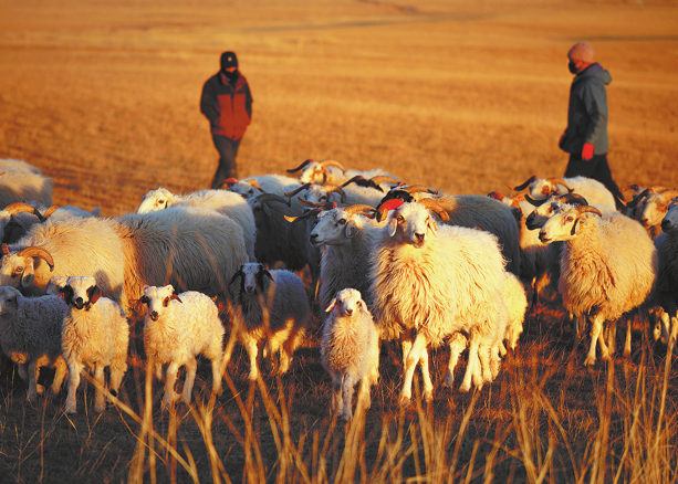 Nomads herd sheep on the grassland in Gangca county, Qinghai province, on Nov 15. QI ZHIYUE/XINHUA