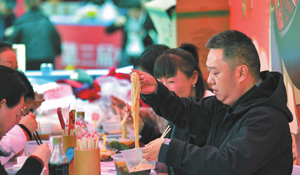 At the booth of seasoning brand Xiangliao, visitors queued to sample freshly prepared noodles. "We initially built our brand through shortvideo platforms like Douyin," said co-founder Yin Dongqin. "Now, we bring our products directly to consumers, combining livestreaming with on-site tastings to connect with people nationwide."