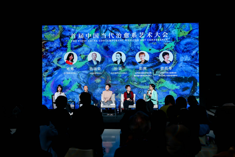 Professionals from education, charity foundations, and creative and healthcare industries discussed how the fine arts and associated fields can benefit people's well-being. It brought an end to Jia Wei's exhibition. [Photo provided to chinadaily.com.cn]