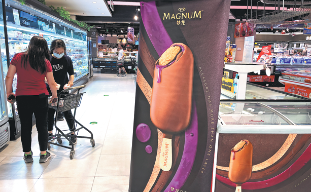 A Magnum ice cream billboard is seen at a Freshippo store in Beijing. CHINA DAILY