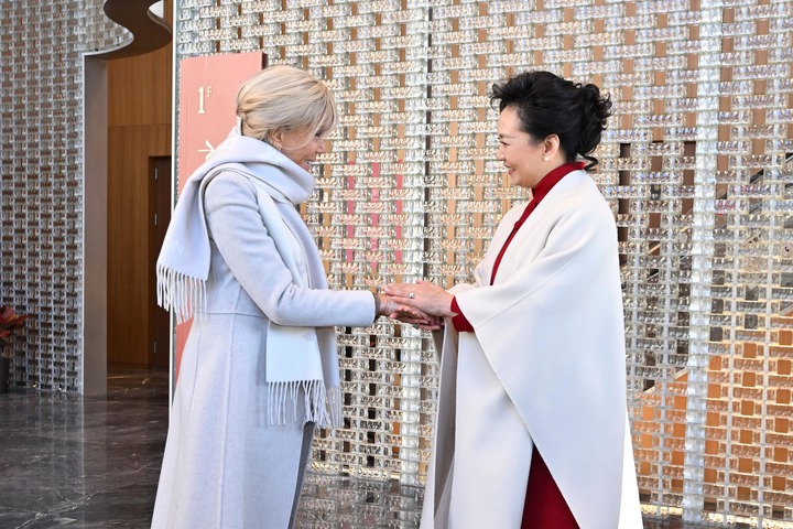 BEIJING -- Peng Liyuan, wife of President Xi Jinping, and Brigitte Macron, wife of French President Emmanuel Macron, visited the Beijing People's Art Theatre (BPAT) here on Thursday.