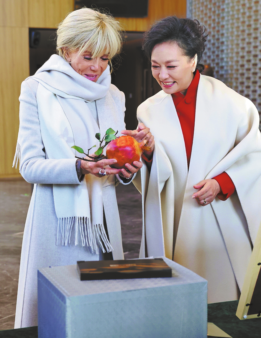 Peng made the remarks on Thursday when visiting the Beijing People's Art Theatre with Brigitte Macron, who is accompanying her husband, French President Emmanuel Macron, on his three-day state visit to China.