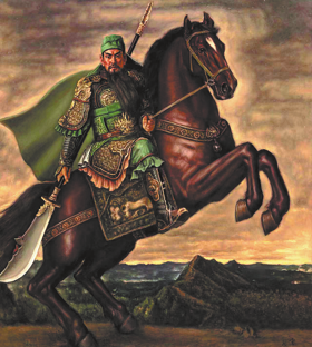Highlights of Yang Feiyun's exhibition, Full Life, include Guan Yu, the Martial Saint (top left), A Village in the Taihang Mountains (top right) and a landscape (above) inspired by The Analects. Yang Feiyun (top center) observes a portrait of Huang Binhong, a prominent ink artist of the 20th century. CHINA DAILY