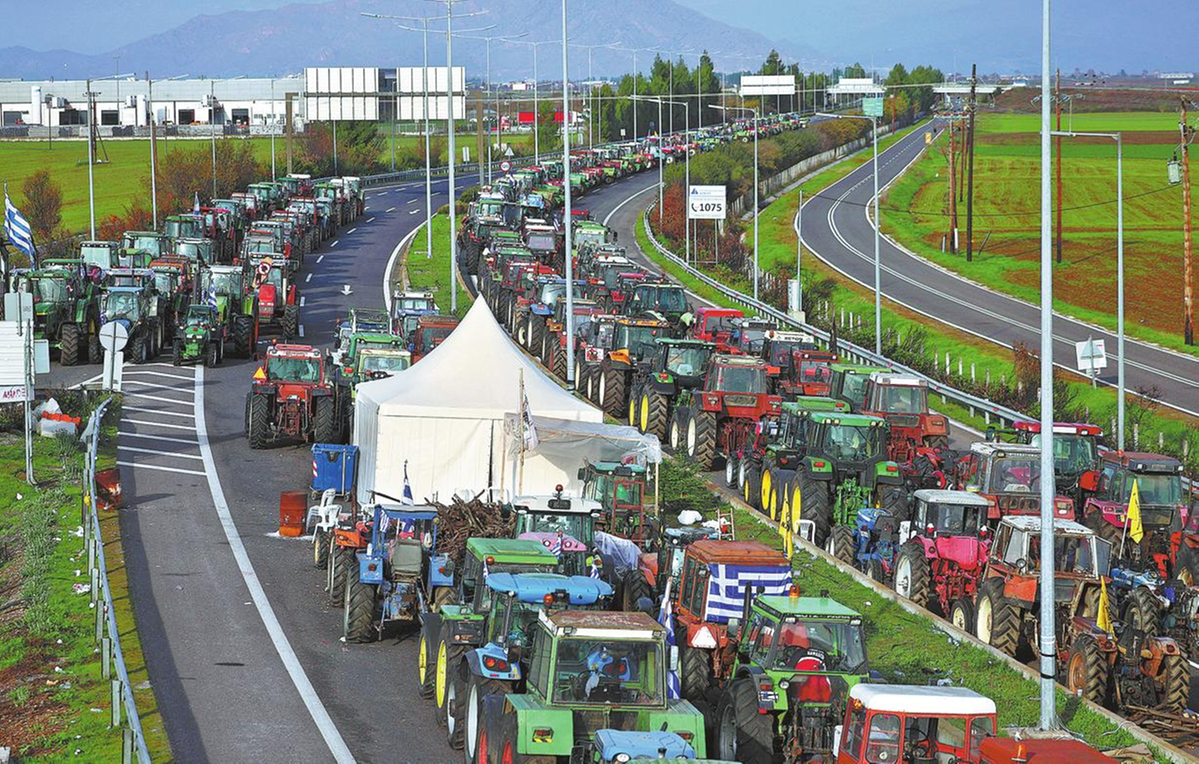 Farmers from across Thessaly, the central farming region where floods ravaged crops and livestock in 2023, drove their tractors and other agricultural vehicles to the nearby coastal city of Volos and left them there for a few hours outside the port. Police sealed the port entrance to keep them away from the passenger and cargo terminals.