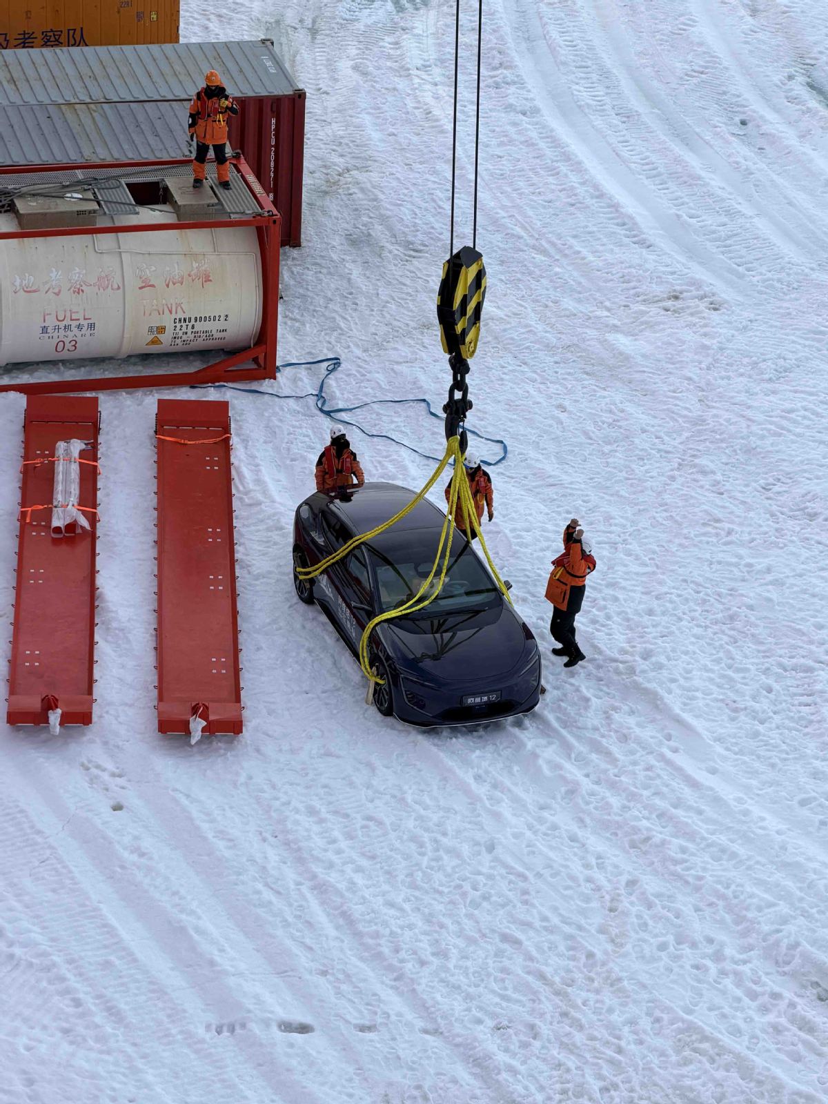 The car was gently lowered onto the Antarctic ice sheet from the polar research vessel Xuelong. It is set to undergo a series of adaptive application tests against Antarctica's extreme conditions, including severe cold, fierce snowstorms, and intense ultraviolet radiation. The data collected from these tests is expected to drive advancements in functional safety, intelligent electronic control, and thermal management for NEVs, the manufacturer said.