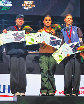 TOKYO — China's Guo Pu delivered a landmark performance at the 2025 WDSF World Breaking Championships in Fukuoka, Japan, on Saturday, capturing the women's title and securing China's first-ever gold medal at the event.