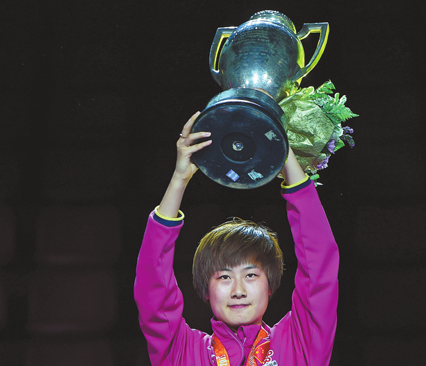 On the international stage, Ding was a three-time Olympic gold medalist. Her singles triumph at the 2016 Rio Olympic Games made her the fifth Chinese female paddler to complete a career Grand Slam — winning at the Olympic Games, world championships and World Cup — after Deng Yaping, Wang Nan, Zhang Yining and Li Xiaoxia.