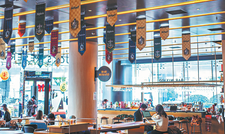 Sissi Liang, a Harry Potter fan in Beijing, immediately purchased a Ravenclaw-themed cup as well as a Hogwarts cup, then visited the themed store in Sanlitun Taikoo Li to try the limited-edition magical beverages. She took photos at the Platform 9¾-inspired installation.