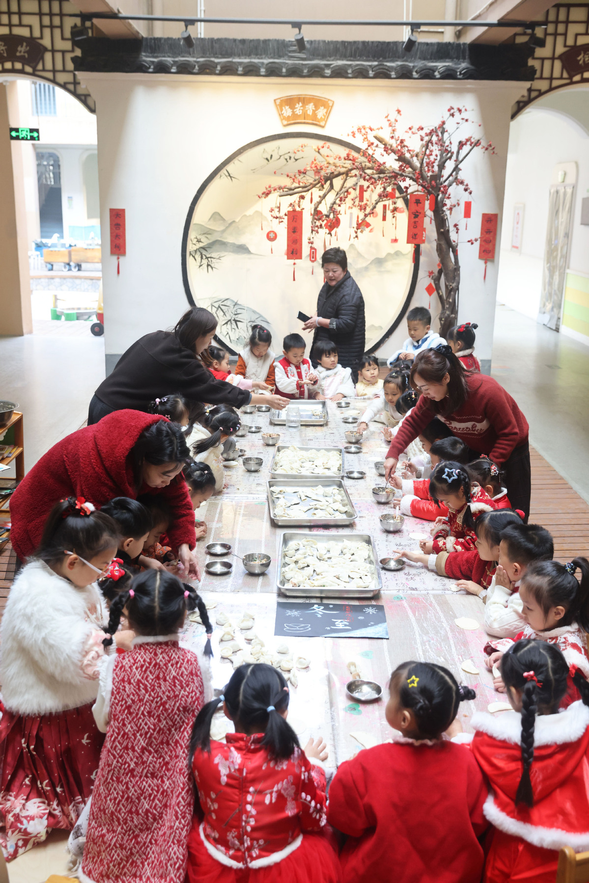 Children make dumplings at a kindergarten in Qianyuan town of Deqing county in Huzhou city, East China's Zhejiang province, Dec 18, 2025. [Photo/Xinhua]