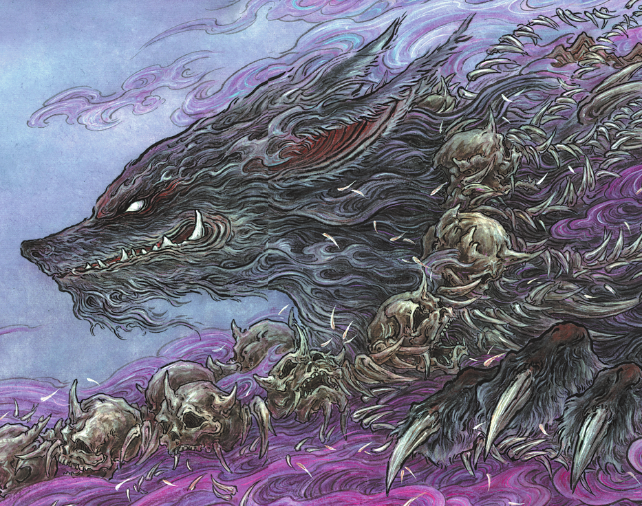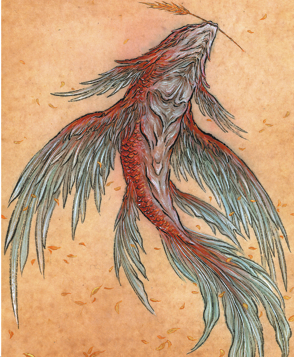 In the original text, the creature called Qie Zhi is described as having an owl-like head, but Li gives it a hawk's head, a choice he says was deliberate.