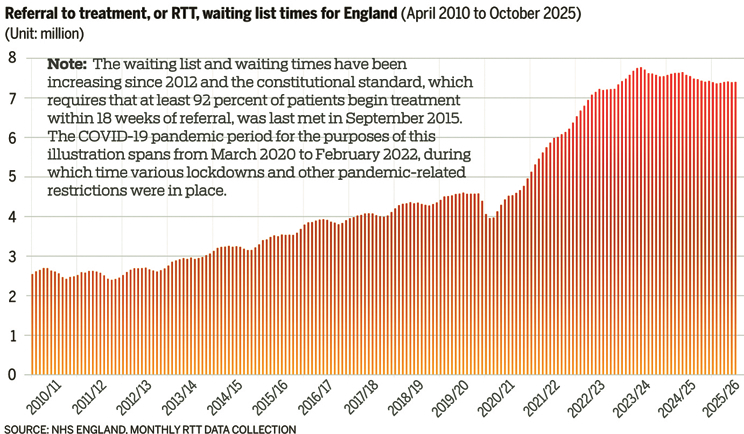 Spending on the NHS after inflation has risen by nearly a fifth, and the workforce by almost a quarter, compared to five years ago, the BBC reported in 2024, yet the number of patients starting treatments has barely increased.