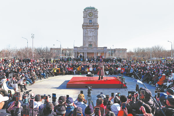 At an outdoor performance at Tianqiao Square in Beijing, Sun Chubo's melodies attract hundreds of residents and travelers, transforming the square into a concert hall. [Photo/XUE JUN/FOR CHINA DAILY]