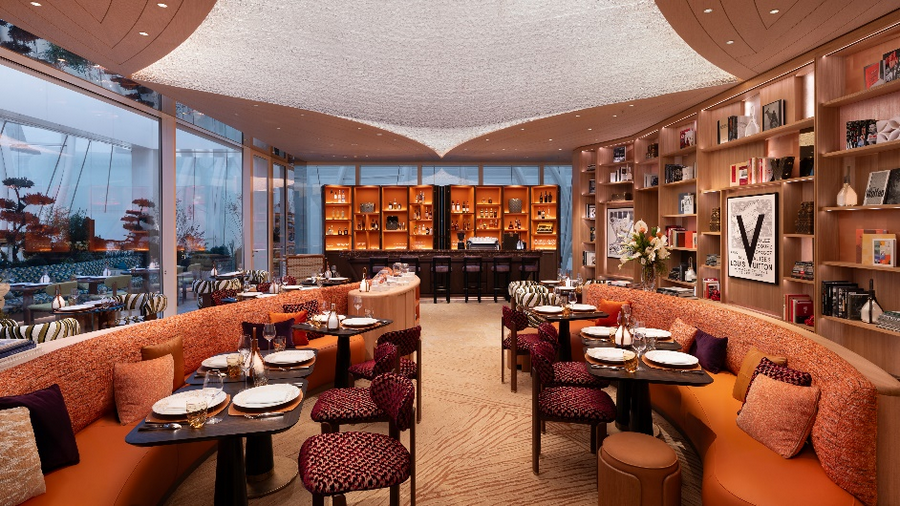 On the fourth floor, the first Louis Vuitton Café in Beijing offers an immersive dining experience, complete with a private dining room and a rooftop bar for events. Works by local artists enrich the space, adding cultural resonance. Under Chef Leonardo Zambrino's direction, Le Café Louis Vuitton offers a menu blending Louis Vuitton classics with local flavors.