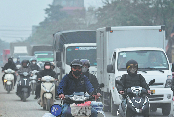 Motorists drive on a road amid heavy air pollution in Hanoi on Dec 11. Toxic smog has blanketed Vietnam's capital, leaving residents wheezing as the air quality dipped to among the world's worst on Dec 11. NHAC NGUYEN/AFP