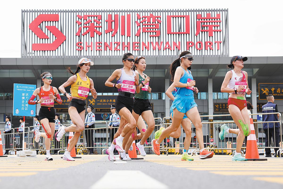 Athletes enter Hong Kong via Shenzhen Bay Port during the women's marathon event of the 15th National Games on Nov 15. The games' first-ever cross-boundary marathon included both men's and women's events. WEI XIAOHAO/CHINA DAILY