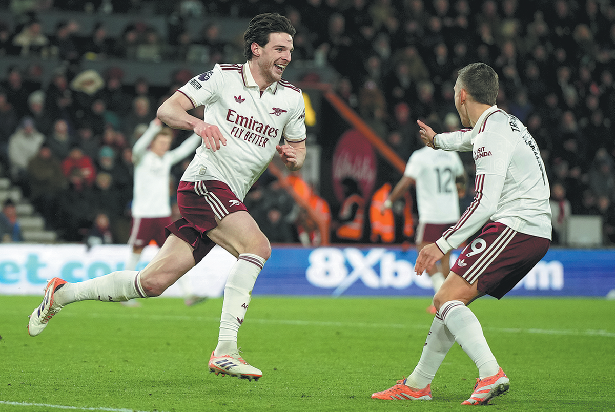 A goal from Gabriel Magalhaes and two from the returning Declan Rice sent the Gunners six points clear of second-placed Villa and seven ahead of Manchester City.