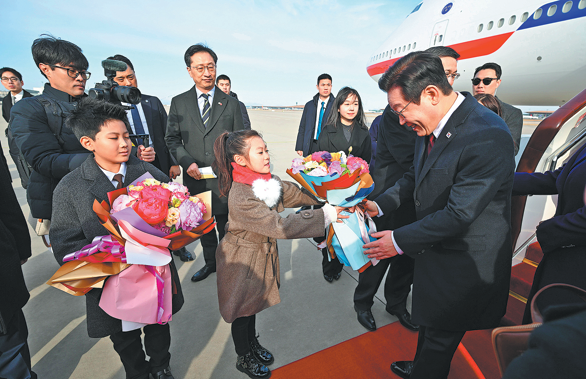 President of the Republic of Korea Lee Jae-myung arrived in Beijing on Sunday afternoon, becoming the first head of state to visit China in the new year.