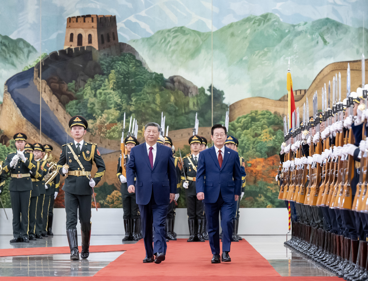 Chinese President Xi Jinping holds a welcome ceremony for President of the Republic of Korea (ROK) Lee Jae-myung in the Northern Hall of the Great Hall of the People prior to their talks in Beijing, capital of China, Jan 5, 2026. Xi held talks with Lee, who is on a state visit to China, at the Great Hall of the People in Beijing on Monday. [Photo/Xinhua]