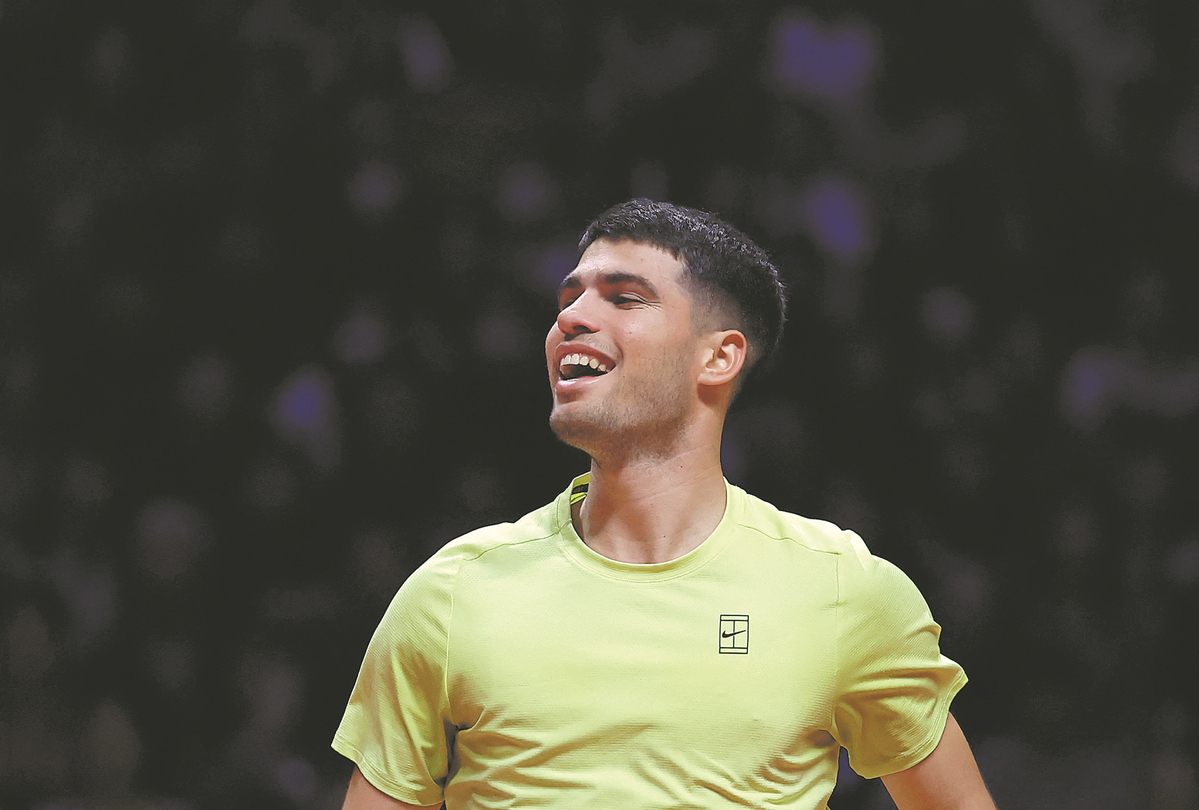 Spain's Carlos Alcaraz reacts during his Hyundai Card Super Match against Italy's Jannik Sinner. [Photo/Agencies]