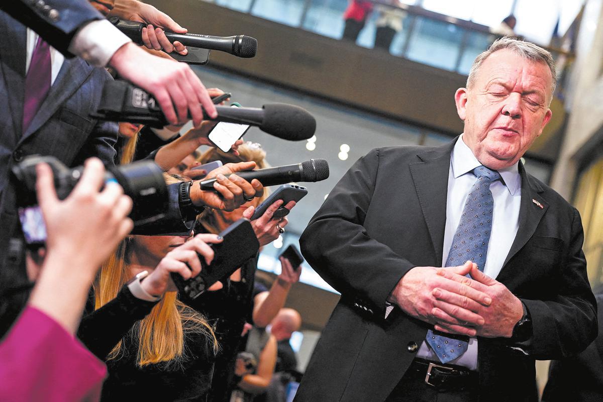 Denmark's Foreign Minister Lars Lokke Rasmussen grimaces as he speaks with members of the media on Wednesday following a meeting with some United States senators on Capitol Hill in Washington, DC. Rasmussen and Greenland's Foreign Minister Vivian Motzfeldt also met on the same day with US Vice-President JD Vance and US Secretary of State Marco Rubio at the White House. Nathan Howard / REUTERS