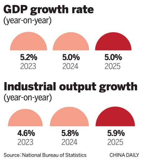 Official data released on Monday showed that China's gross domestic product grew 5 percent last year, meeting the country's annual target of around 5 percent. The hard-won performance, achieved amid heightened tariff pressures, has laid a solid foundation for a steady start to economic growth in 2026, reinforcing confidence that the world's second-largest economy remains on a stable trajectory.