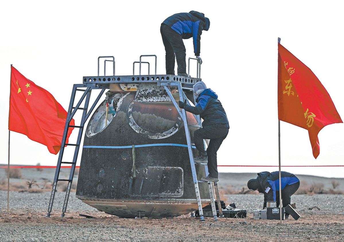 The capsule touched down at 9:34 am at the Dongfeng landing site in North China's Inner Mongolia autonomous region, the agency said, adding that a preliminary on-site inspection by ground recovery personnel confirmed that its exterior was intact and the payloads inside were in good condition.
