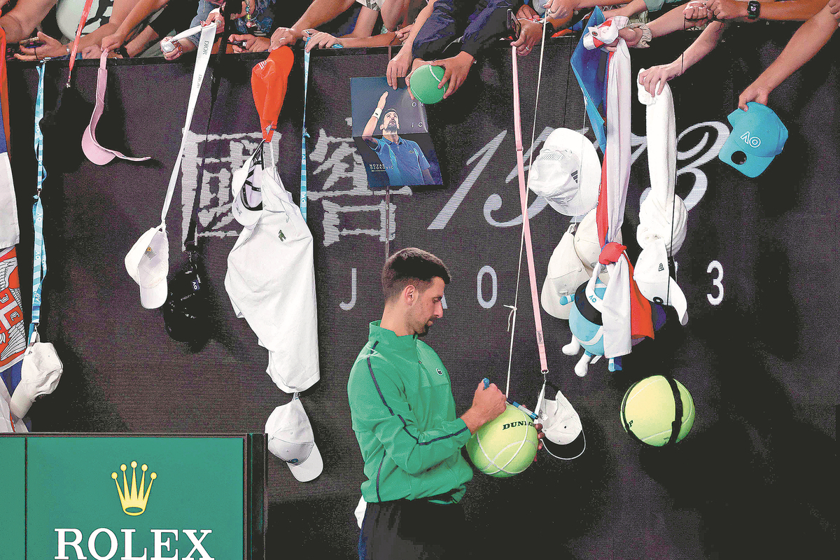 Serbia's Novak Djokovic signs autographs for fans after beating Spain's Pedro Martinez in their Australian Open first-round match in Melbourne on Monday. [Photo/Agencies]