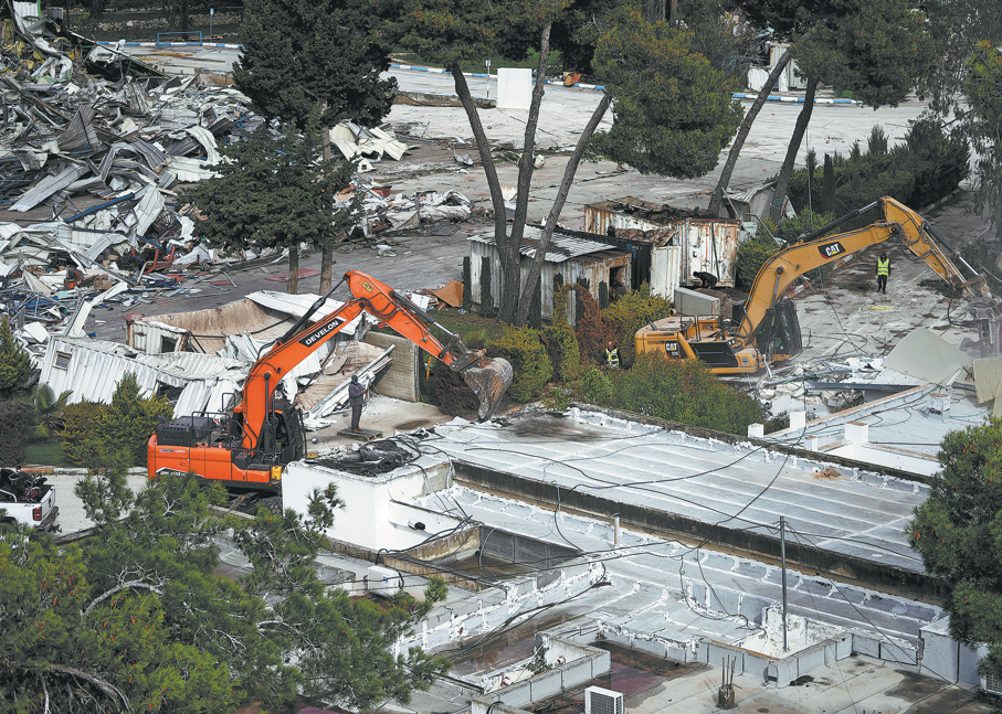 Israeli excavators demolish a compound of UNRWA, belonging to the UN agency that assists Palestinian refugees, in East Jerusalem on Tuesday. MAHMOUD ILLEAN/AP