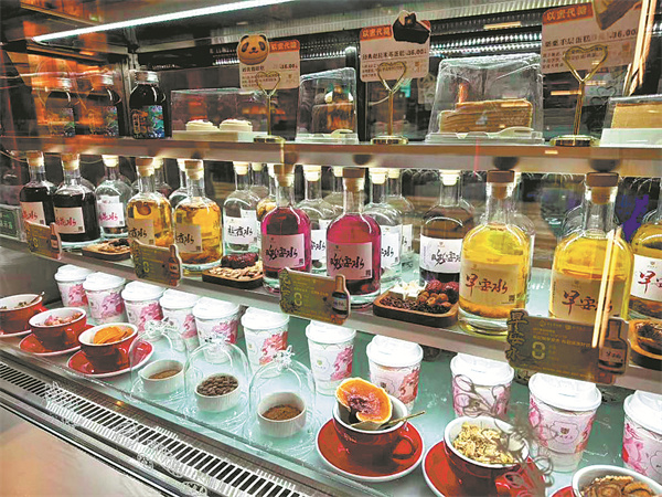 A variety of drinks infused with herbal ingredients are available at a Tong Ren Tang's coffee shop in Chengdu, capital city of Sichuan province, on Dec 15.[Photo/Xinhua]
