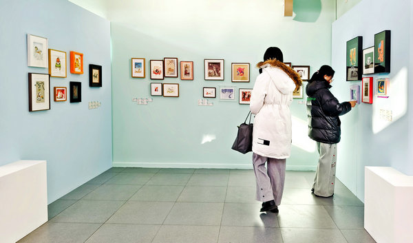 Horse-themed prints by students from the Central Academy of Fine Arts are on display at the National Art Museum of China. [Photo by Jiang Dong/chinadaily.com.cn]