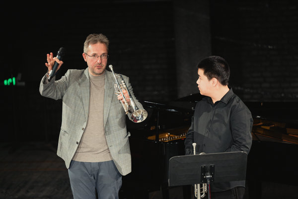 Led by horn instructor Wen Yang and trumpet faculty member Sergey Tyuteykin, a master class and a concert were held in Beijing on Sunday. [Photo provided to chinadaily.com.cn]