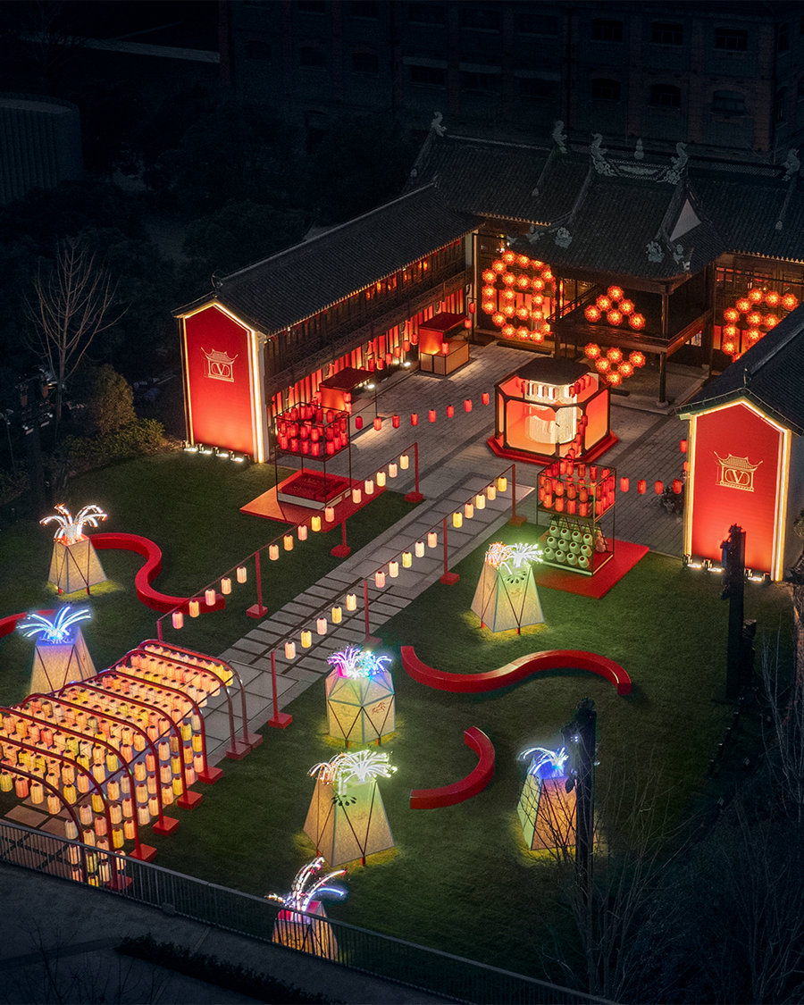To Jane's "A Thousand Trees Blooming at Night" conveys the imagery of "a million flowers flickering in the sky": ten horses with different personalities meet beneath a tree of fireworks, their silhouettes projected onto a translucent surface using principles similar to shadow puppetry. The "V" shape serves as the structural prototype for the electronic fireworks container, supported by elements inspired by "horse hooves" in traditional Chinese furniture. The aim is to construct a layered sense of imagination and place.