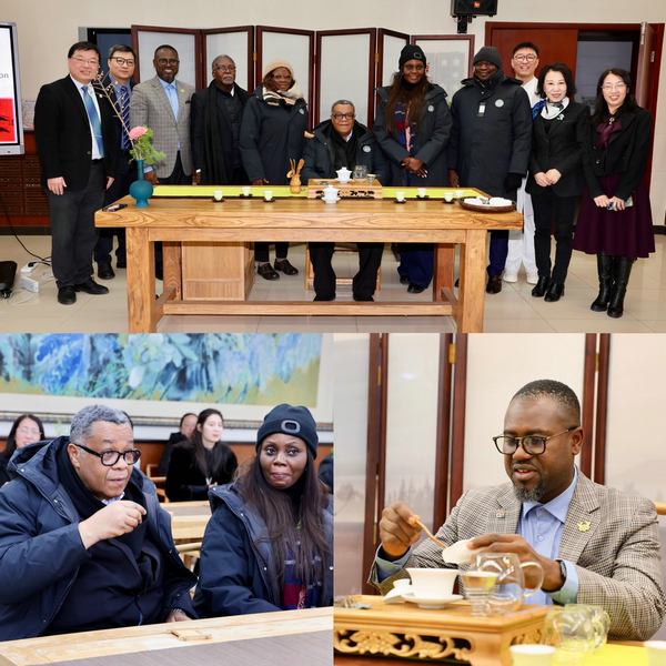 The Ghanaian delegation at a Chinese tea ceremony during their visit to Beijing Language and Culture University on Jan 19. [Photo provided to chinadaily.com.cn]