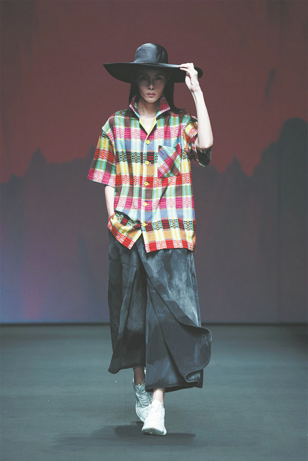 Hong'an handloom cloth woven by Tao Wencheng appears at the 2024 China Fashion Week. CHINA DAILY