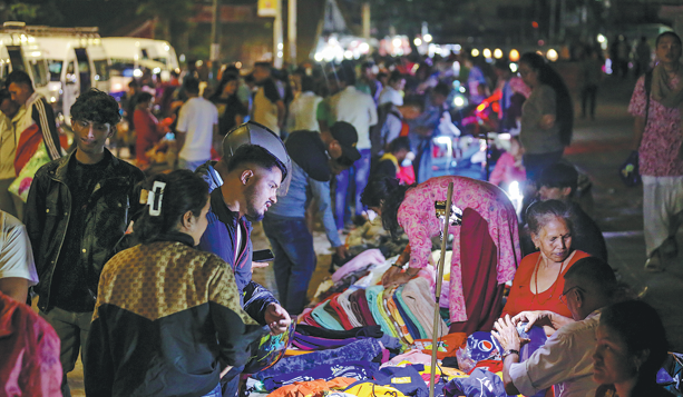 Street vendors sell apparel and other items at a temporary night market in Kathmandu, Nepal, on Sept 20. NURPHOTO VIA GETTY IMAGES