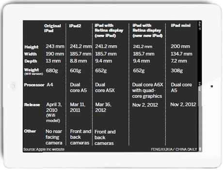 The 7.9-inch device, something that former Apple CEO Steve Jobs had once expressed opposition to, is now in production. The mini comes with the same processor, battery life and resolution as the iPad 2. According to Apple, people can now place orders for the iPad mini and fourth-generation iPad in the US and selected cities, including Hong Kong. No announcement has been made about when the tablets will reach the Chinese mainland. The new iPad carries a starting price of $499 and the mini has a starting price of $329. Apple said both will ship on Nov 2.
