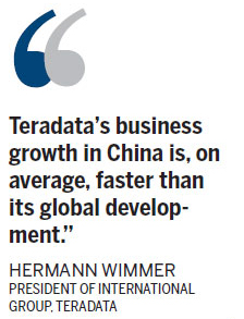 Hermann Wimmer, president of International Group, Teradata, said the Chinese market contributes greatly to his company's global business, which saw two-digit growth last year.