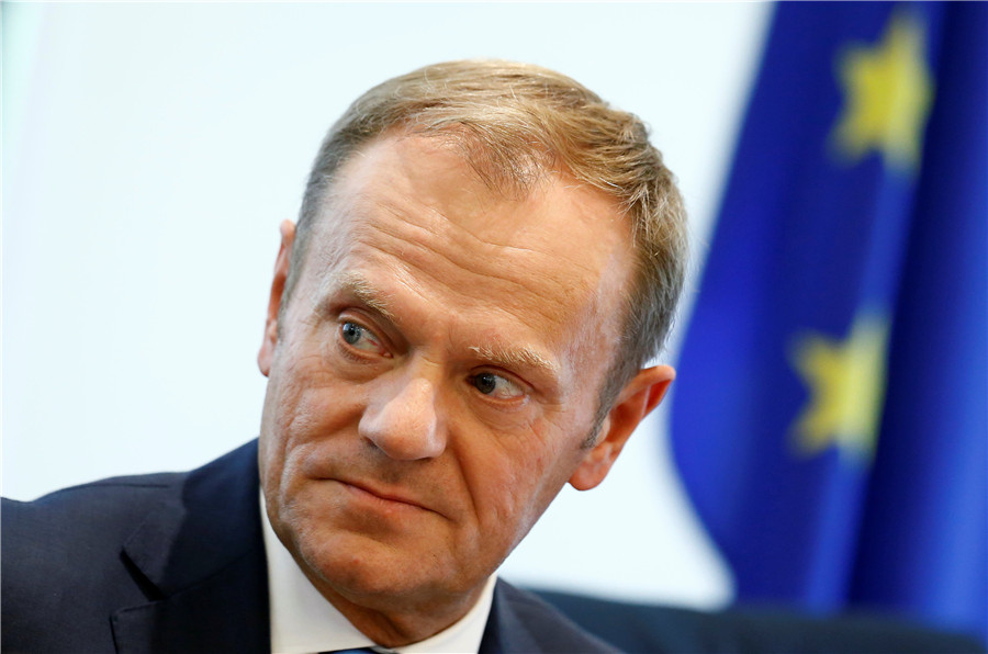 European Council President Donald Tusk attends a news conference at the Delegation of the European Union to China in Beijing, July 13, 2016. [Photo/Agencies]