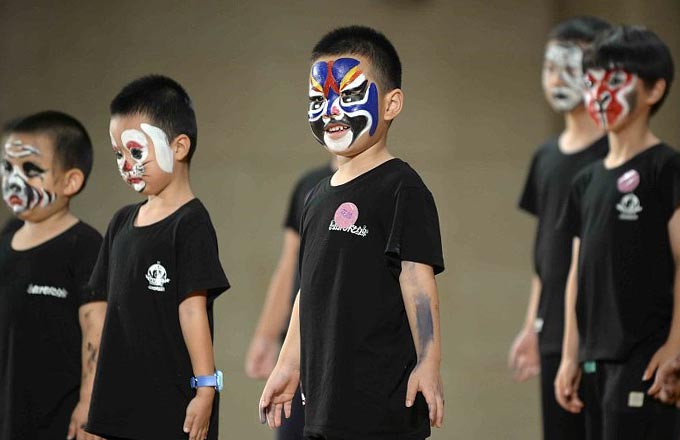 A child with a WiFi logo on his head walks in Shijingshan district in Beijing on July 20, 2017.[Photo/VCG] |