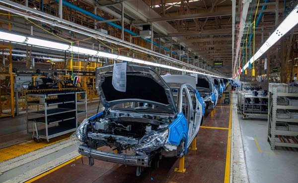 A production line of Chang'an auto. The company forecasts sales volume to hit 3.4 million, which would rank it 10th globally.[Photo/China Daily] |