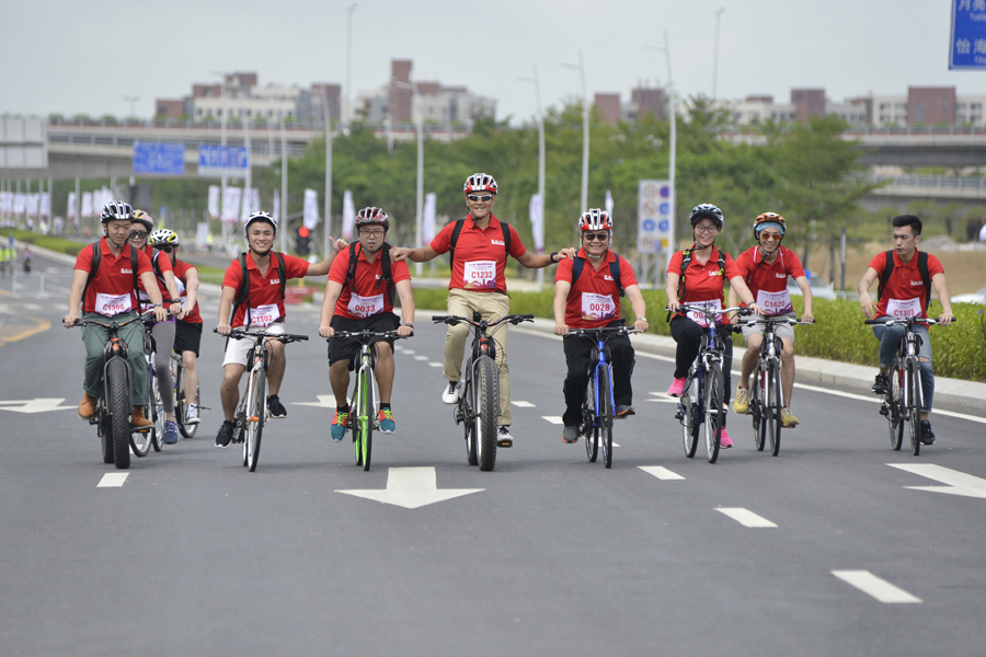 Employees of Hong Kong and Shenzhen companies participate in a sports event held in QianhaiShekou Free Trade Zone, Shenzhen, Guangdong province, May 28, 2016. [Photo/VCG]