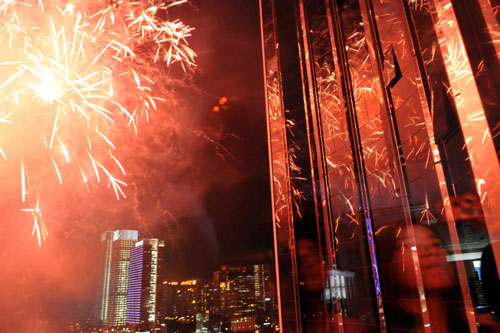 Fireworks explode over Shenzhen's Central Business District to mark the 30th anniversary of the establishment of Shenzhen special economic zone September 6, 2010. [Photo/Xinhua]