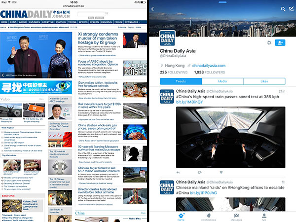 Screenshot of iPad Pro shows the multitasking function of the device. [Photo/chinadaily.com.cn] |