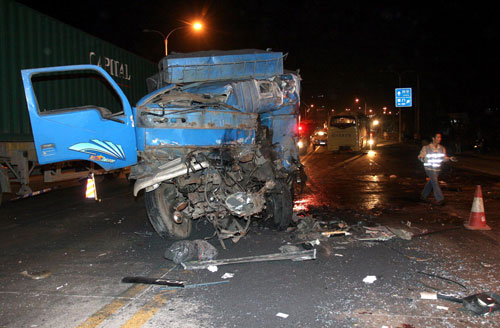 One killed in a truck-bus crash