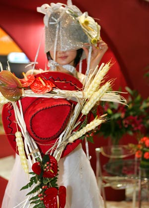 A model shows a flower-arranging work during the 10th Hortiflor Expo opened in Beijing, China, April 9, 2008. Producers and companies from 19 countries and regions attended the expo. [Xinhua]