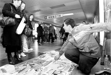 He now sells newspapers and magazines in an underground passage at Linjiang Gate in Southwest China's Chongqing municipality.