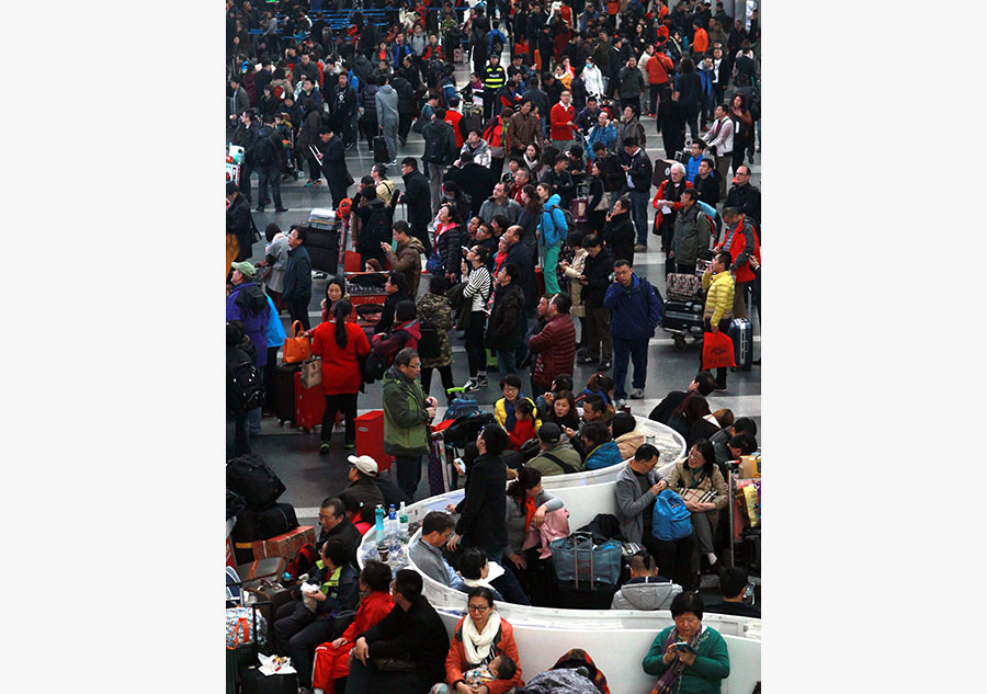 A large number of passengers remain stranded at Terminal 2 of the Capital International Airport in Beijing, Nov 23, 2015. [Photo by Zou Hong/Asianewsphoto]